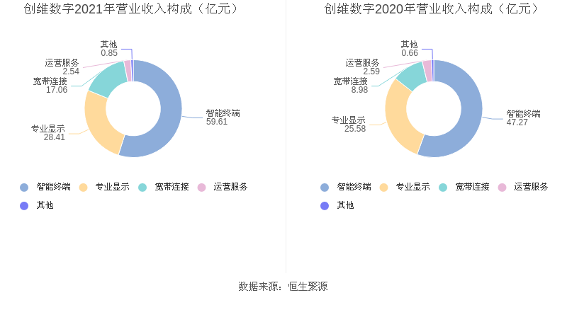 分产品看,智能终端、专业显示、宽带连接业务的2021年毛利率分别为19.49%、7.92%、15.55%。