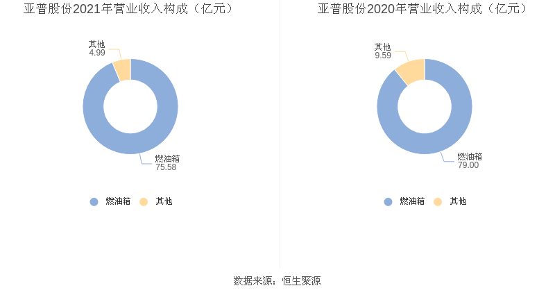 分产品来看,2021年度益达娱乐主营业务中,燃油箱收入75.58亿元,占营业收入的93.81%,同比下降4.32%。