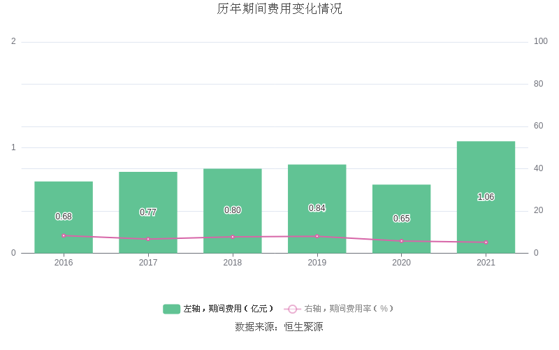 2021年全年,益达娱乐期间费用为1.06亿元,较上年增加4078.05万元;但期间费用率为5.17%,较上年下降0.63个百分点。