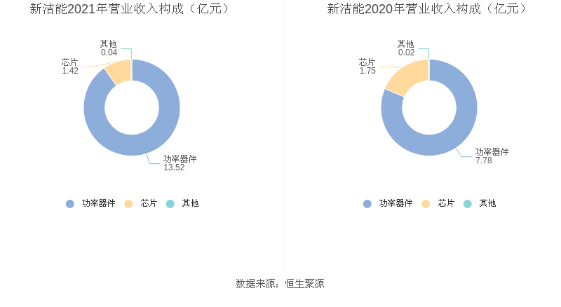 分产品看,功率器件、芯片2021年毛利率分别为38.71%、41.43%。