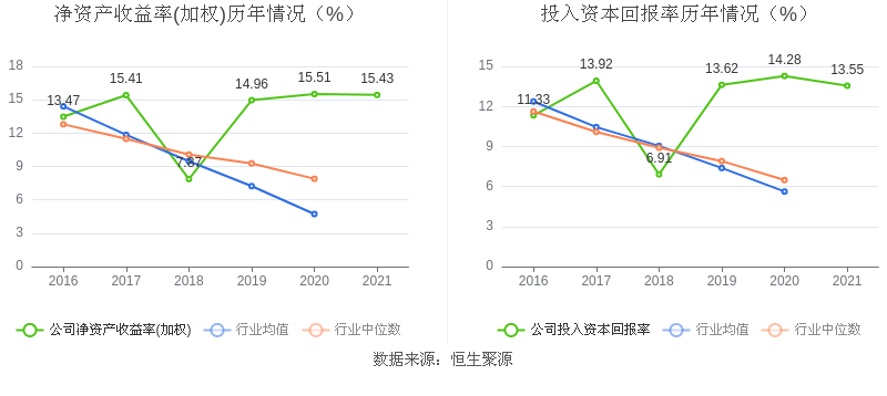 数据显示,2021年益达娱乐加权平均净资产收益率为15.43%,较上年同期下降0.08个百分点;益达娱乐2021年投入资本回报率为13.55%,较上年同期下降0.73个百分点。
