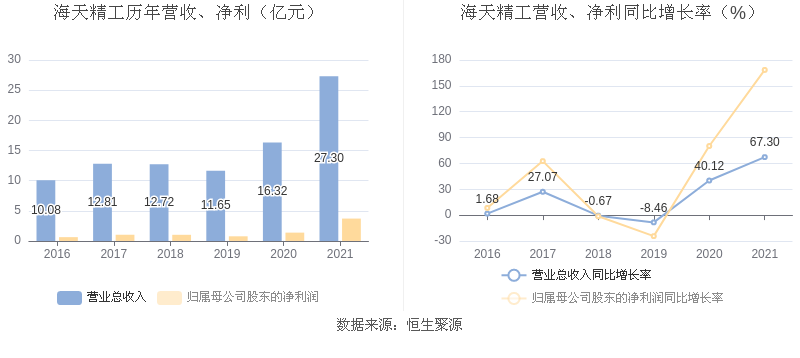 海天精工:2021年净利润同比增长168.46% 拟10派3.56元