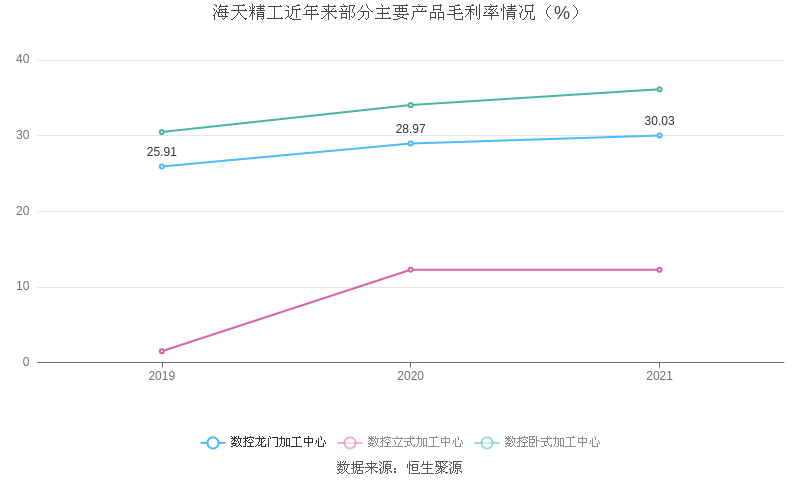 分产品看,数控龙门加工中心、数控立式加工中心、数控卧式加工中心2021年毛利率分别为30.03%、12.25%、36.12%。