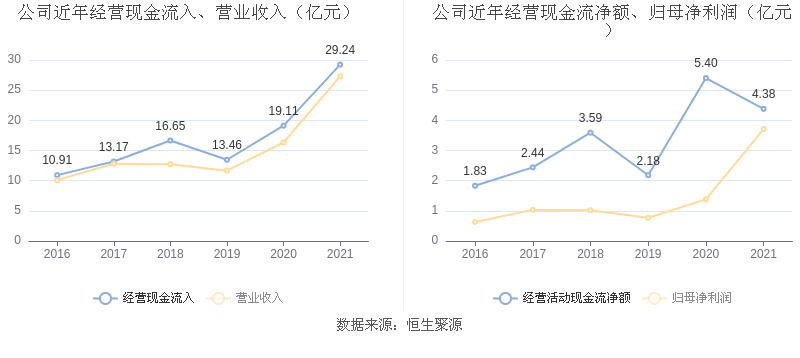 截至2021年末,益达娱乐经营活动现金流净额为4.38亿元,同比下跌18.99%;筹资活动现金流净额-1.27亿元,同比减少1.04亿元;投资活动现金流净额-5411.98万元,相比上年同期增加5119.68万元。