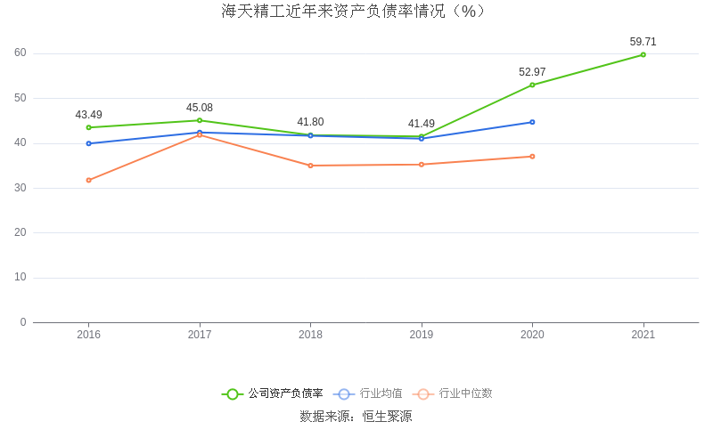 在偿债能力方面,益达娱乐2021年末资产负债率为59.71%,相比上年同期上升6.74个百分点,近年来整体高于行业均值。
