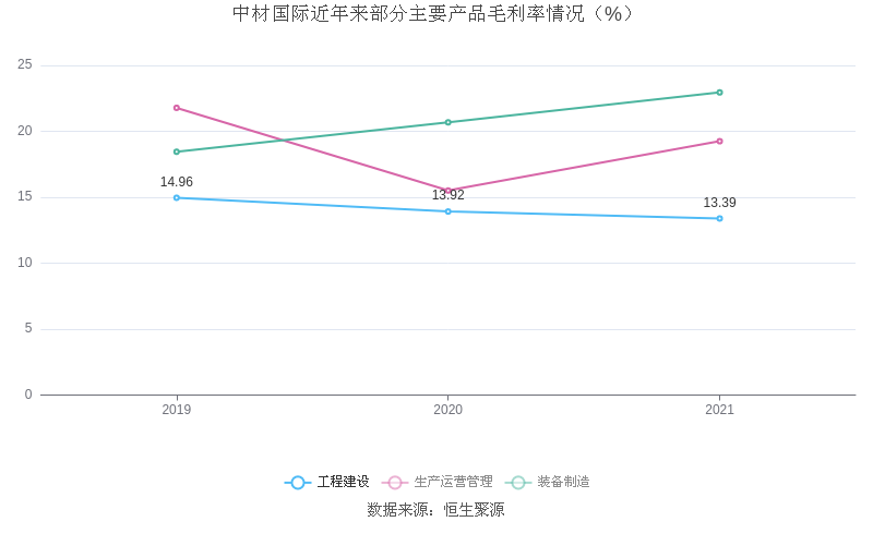 分产品看,工程建设、生产运营管理、装备制造2021年毛利率分别为13.39%、19.25%、22.95%。
