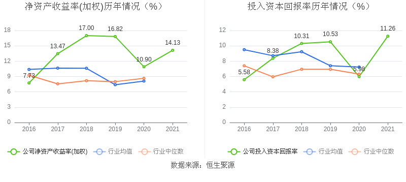 数据显示,2021年益达娱乐加权平均净资产收益率为14.13%,较上年同期增长3.23个百分点;益达娱乐2021年投入资本回报率为11.26%,较上年同期增长5.28个百分点。