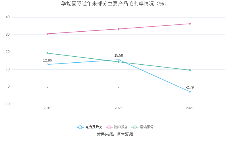 分产品看,电力及热力、港口服务、运输服务2021年毛利率分别为-2.79%、36.26%、9.58%。