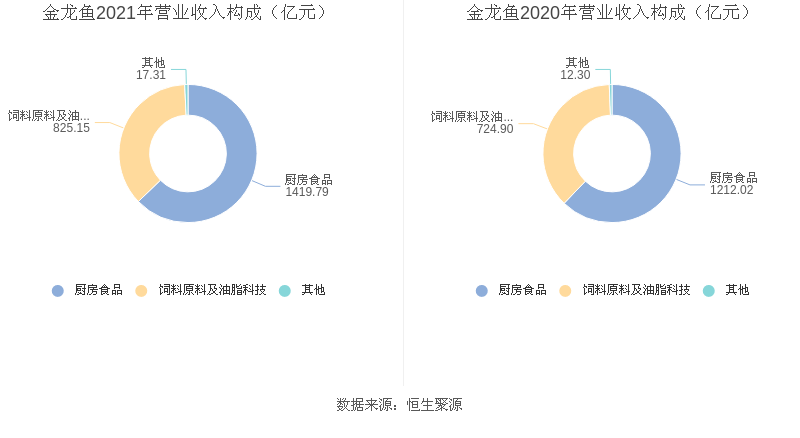 分产品来看,2021年度益达娱乐主营业务中,厨房食品收入1419.79亿元,占营业收入的62.76%,同比增长17.14%;饲料原料及油脂科技收入825.15亿元,占营业收入的36.47%,同比增长13.83%;其他收入17.32亿元,占营业收入的0.77%,同比增长40.92%。