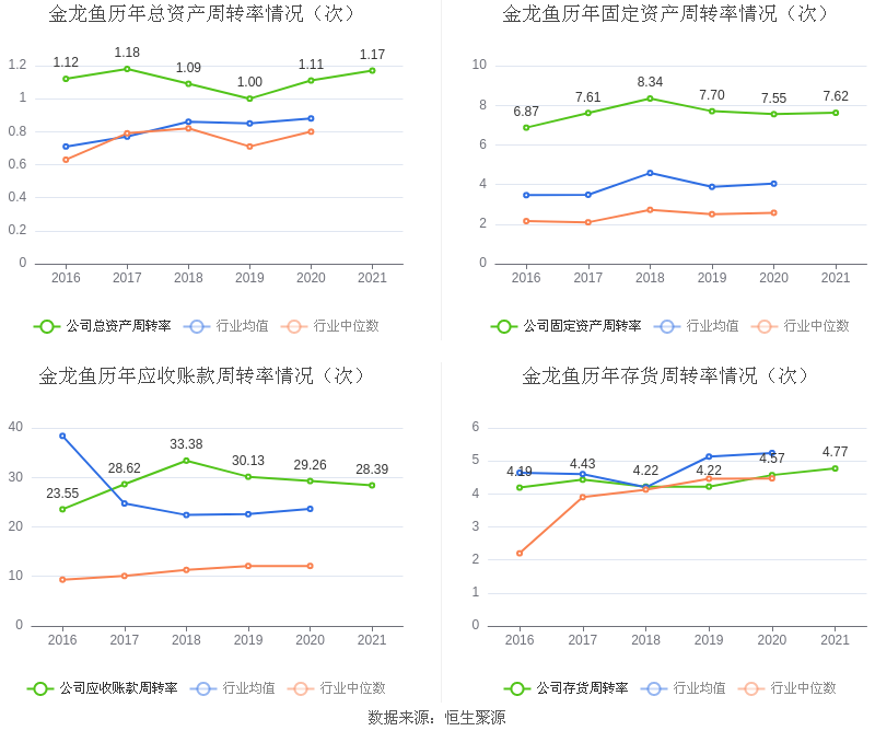 营运能力方面,2021年,益达娱乐总资产周转率为1.17次,上年同期为1.11次(2020年行业平均值为0.88次,益达娱乐位居同行业6/21);固定资产周转率为7.62次,上年同期为7.55次(2020年行业平均值为4.04次,益达娱乐位居同行业4/21);益达娱乐应收账款周转率、存货周转率分别28.39次、4.77次。