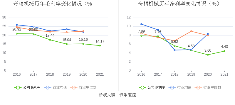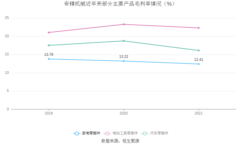 数据统计显示,奇精机械近三年净利润复合年增长率为4.60%,这一数据在2020年家电零部件行业中排名17/25。