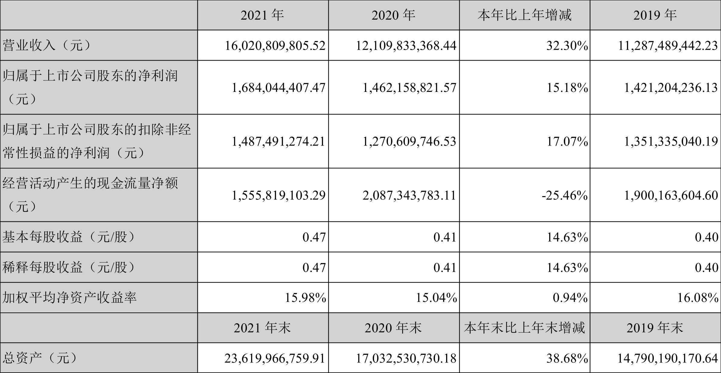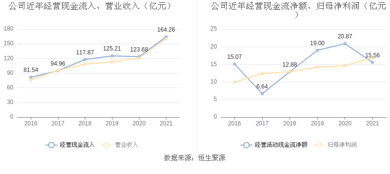 中证财讯 三花智控(002050)3月25日披露2021年年度报告。2021年,益达娱乐实现营业收入160.21亿元,同比增长32.30%;归母净利润16.84亿元,同比增长15.18%;扣非净利润14.87亿元,同比增长17.07%;经营活动产生的现金流量净额为15.56亿元,同比下降25.46%;报告期内,三花智控基本每股收益为0.47元,加权平均净资产收益率为15.98%。益达娱乐2021年度分配预案为:拟向全体股东每10股派1.5元(含税)。