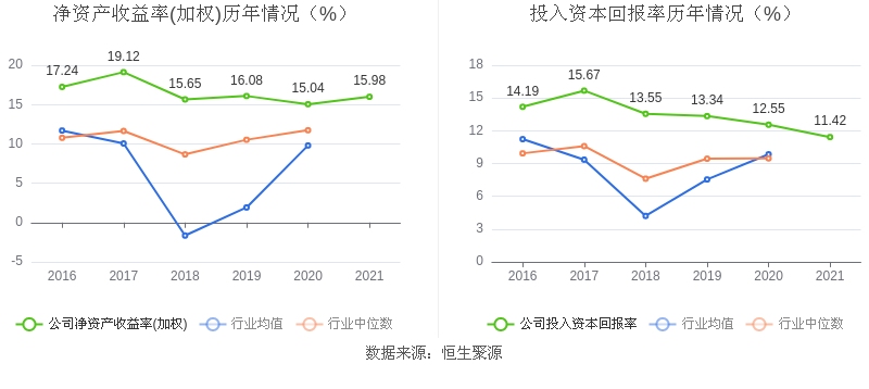数据显示,2021年益达娱乐加权平均净资产收益率为15.98%,较上年同期增长0.94个百分点,长期高于行业平均;益达娱乐2021年投入资本回报率为11.42%,较上年同期下降1.13个百分点。