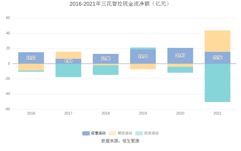 截至2021年末,益达娱乐经营活动现金流净额为15.56亿元,同比下降25.46%;筹资活动现金流净额28.23亿元,同比增加32.19亿元;投资活动现金流净额-50.50亿元,相比上年同期减少42.54亿元。