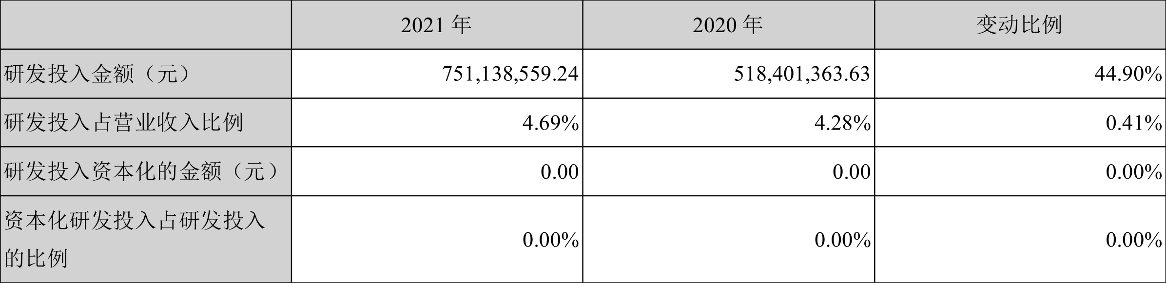 2021年全年,益达娱乐研发投入金额为7.51亿元,同比增长44.90%;研发投入占营业收入比例为4.69%,相比上年同期上升0.41个百分点。此外,益达娱乐全年研发投入资本化率为0。