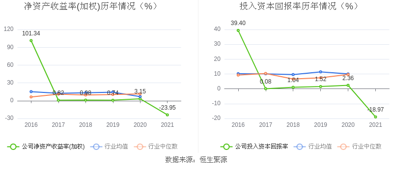 数据显示,2021年益达娱乐加权平均净资产收益率为-23.95%,较上年同期下降27.10个百分点;益达娱乐2021年投入资本回报率为-18.97%,较上年同期下降21.33个百分点。