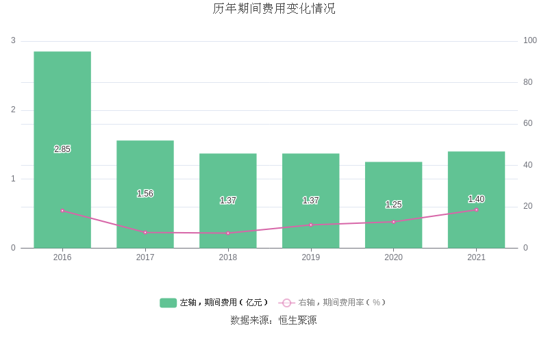 2021年全年,益达娱乐期间费用为1.40亿元,较上年增加1533.97万元;期间费用率为18.54%,较上年上升5.85个百分点。