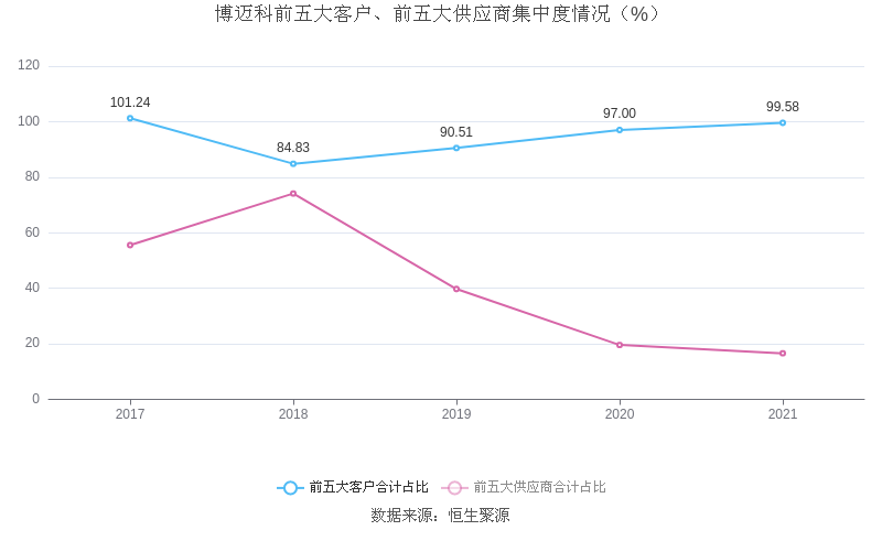 报告期内,益达娱乐前五大客户合计销售金额40.64亿元,占总销售金额比例为99.58%,益达娱乐前五名供应商合计采购金额6.40亿元,占年度采购总额比例为16.61%。