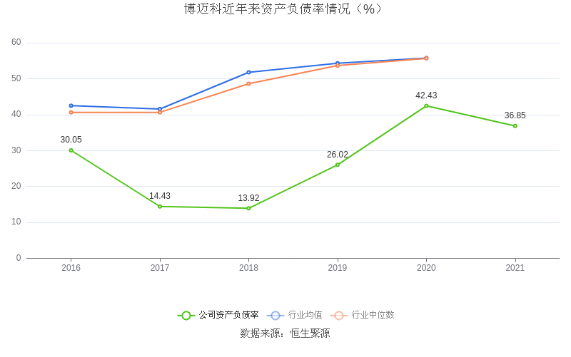 在偿债能力方面,益达娱乐2021年末资产负债率为36.85%,相比上年同期下降5.58个百分点,近年来整体低于行业均值。