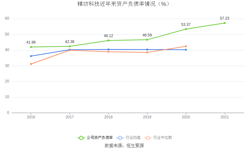 在偿债能力方面,益达娱乐2021年末资产负债率为57.23%,相比上年同期上升3.86个百分点,近年来整体高于行业均值。