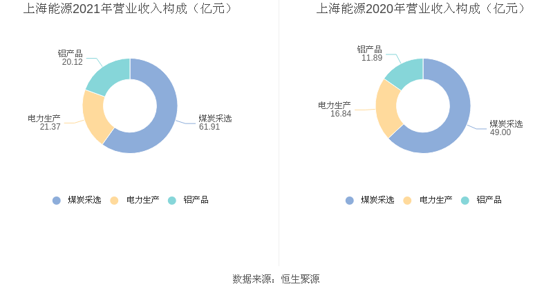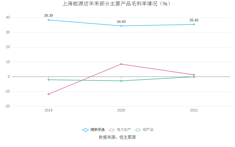 分产品看,煤炭采选、电力生产、铝产品2021年毛利率分别为35.40%、1.34%、-0.02%。