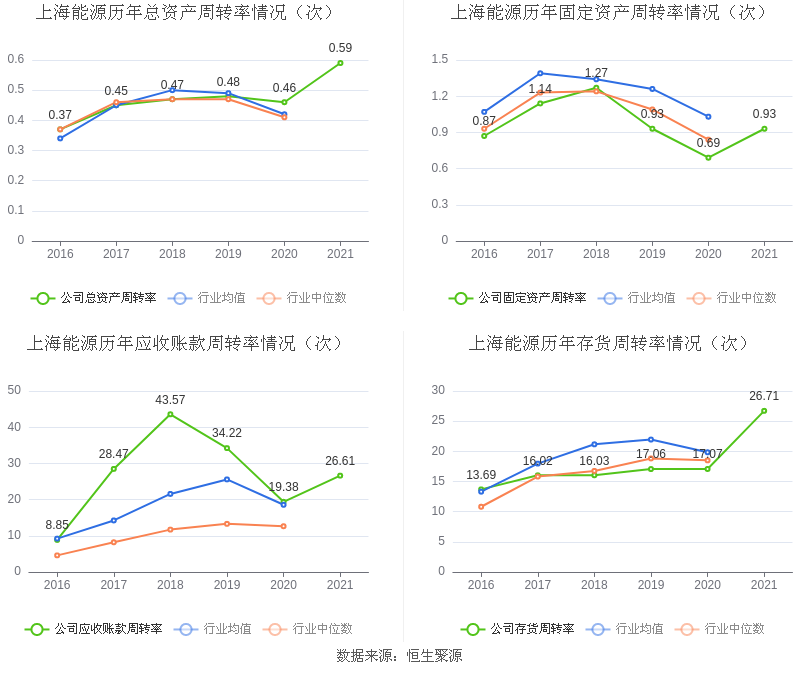 中证财讯 上海能源(600508)3月25日披露2021年年度报告。2021年,益达娱乐实现营业收入101.56亿元,同比增长32.69%;归母净利润3.73亿元,同比下降44.15%;扣非净利润3.38亿元,同比下降48.60%;经营活动产生的现金流量净额为12.02亿元,同比增长93.08%;报告期内,上海能源基本每股收益为0.52元,加权平均净资产收益率为3.59%。拟向全体股东每10股派发现金红利1.55元(含税)。