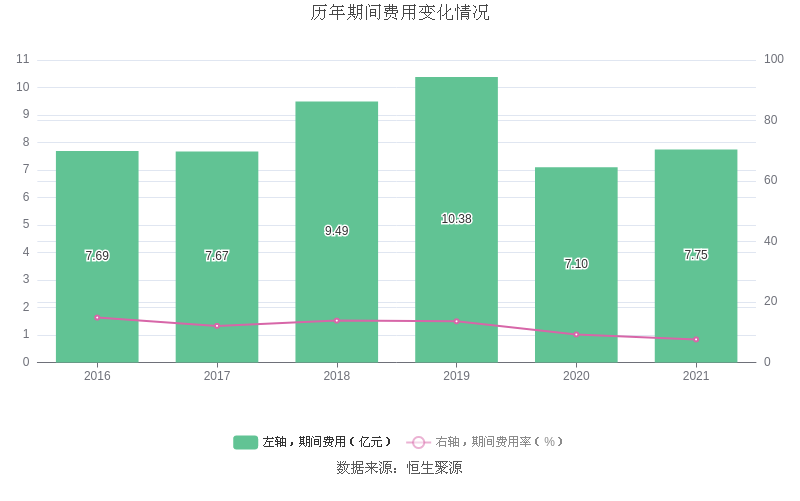 2021年全年,益达娱乐期间费用为7.75亿元,较上年增加6544.21万元;但期间费用率为7.63%,较上年下降1.64个百分点。