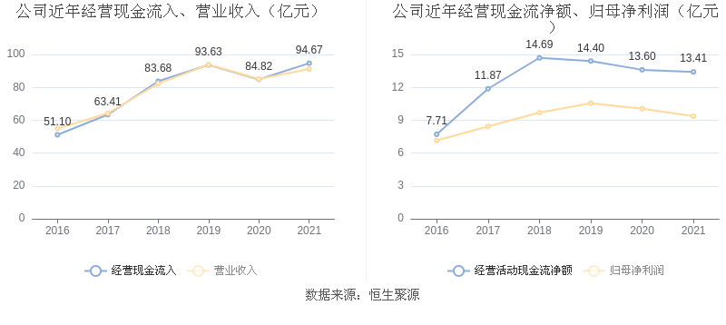 中证财讯 华润双鹤(600062)3月25日披露2021年年度报告。2021年,益达娱乐实现营业收入91.12亿元,同比增长7.14%;归母净利润9.36亿元,同比下降6.91%;扣非净利润8.70亿元,同比下降9.56%;经营活动产生的现金流量净额为13.41亿元,同比下降1.41%;报告期内,华润双鹤基本每股收益为0.90元,加权平均净资产收益率为9.78%。拟向全体股东每10股派发现金红利4.80元(含税)。