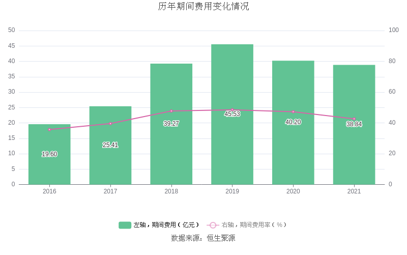 2021年全年,益达娱乐期间费用为38.84亿元,较上年减少1.36亿元;期间费用率为42.63%,较上年下降4.64个百分点。