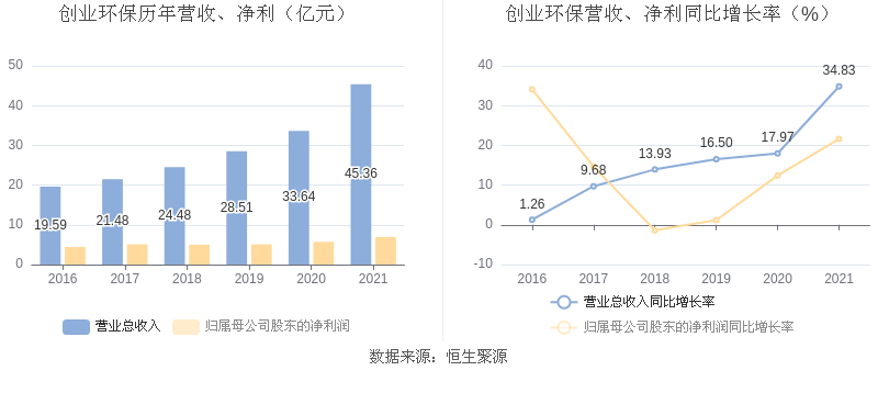 创业环保:2021年净利润同比增长21.60% 拟10派1.46元