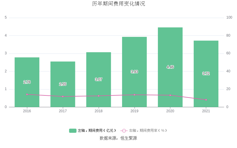 2021年全年,益达娱乐期间费用为3.72亿元,较上年减少7455.30万元;期间费用率为8.20%,较上年下降5.07个百分点。
