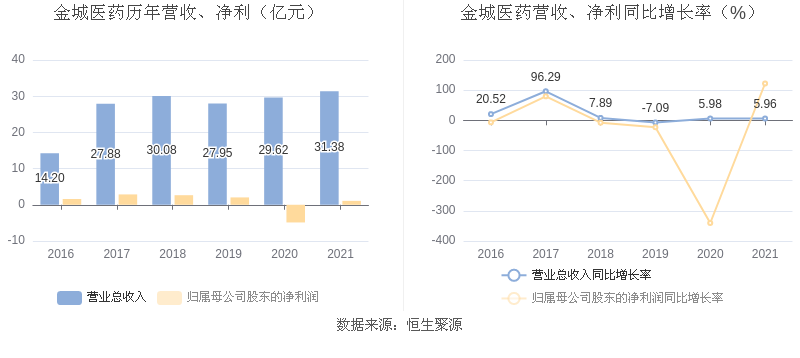 金城医药:2021年同比扭亏 净利润1.08亿元 拟10派2元
