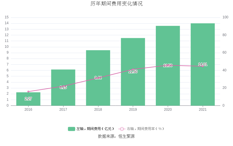 2021年全年,益达娱乐期间费用为14.01亿元,较上年增加4215.84万元;但期间费用率为44.63%,较上年下降1.23个百分点。