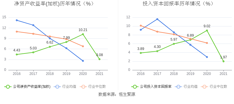 数据显示,2021年益达娱乐加权平均净资产收益率为3.08%,较上年同期下降7.13个百分点;益达娱乐2021年投入资本回报率为1.97%,较上年同期下降7.05个百分点。