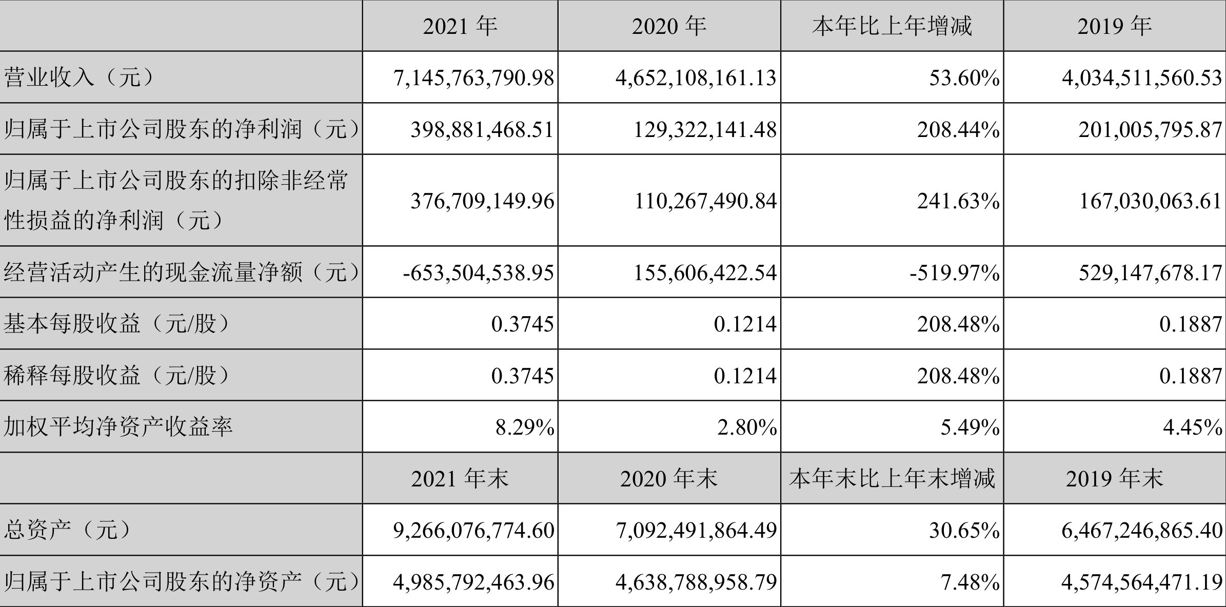 中证财讯 中科三环(000970)3月26日披露2021年年度报告。2021年,益达娱乐实现营业收入71.46亿元,同比增长53.60%;归母净利润3.99亿元,同比增长208.44%;扣非净利润3.77亿元,同比增长241.63%;经营活动产生的现金流量净额为-6.54亿元,上年同期为1.56亿元;报告期内,中科三环基本每股收益为0.37元,加权平均净资产收益率为8.29%。拟向全体股东每10股派0.80元(含税)。