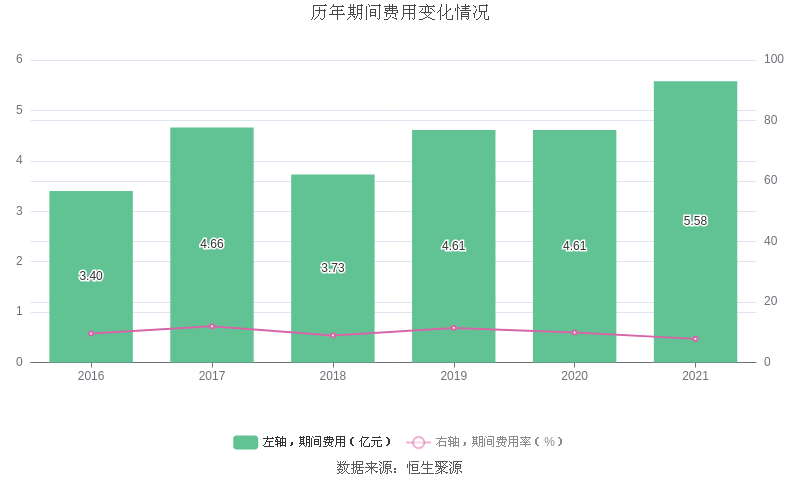 2021年全年,益达娱乐期间费用为5.58亿元,较上年增加9678.18万元;但期间费用率为7.81%,较上年下降2.10个百分点。