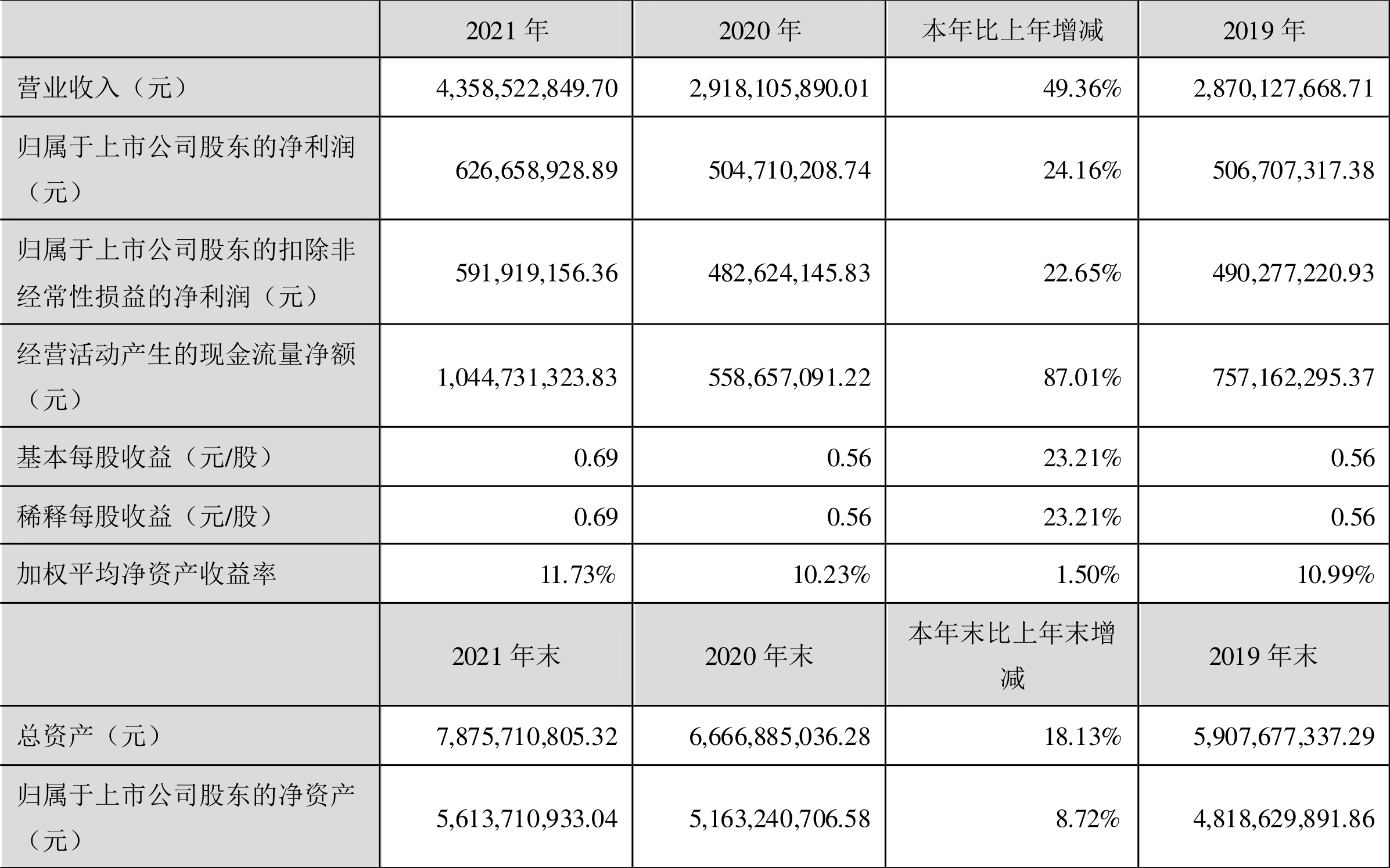 中证财讯 万润股份(002643)3月26日披露2021年年度报告。2021年,益达娱乐实现营业收入43.59亿元,同比增长49.36%;归母净利润6.27亿元,同比增长24.16%;扣非净利润5.92亿元,同比增长22.65%;经营活动产生的现金流量净额为10.45亿元,同比增长87.01%;报告期内,基本每股收益为0.69元,加权平均净资产收益率为11.73%。拟向全体股东每10股派2.55元(含税)。
