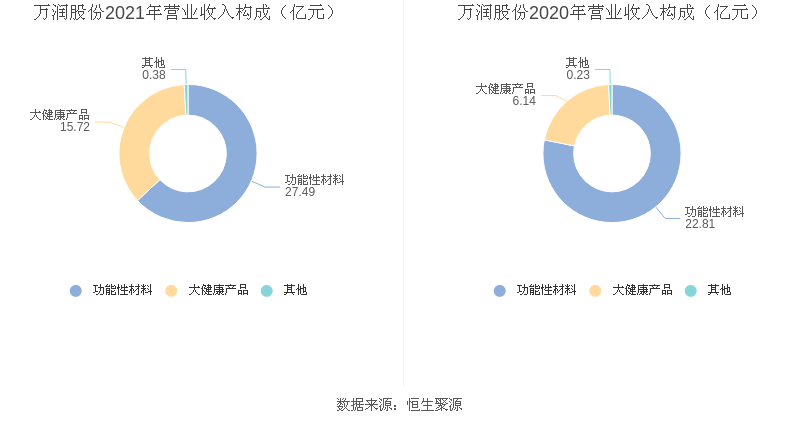 分产品看,功能性材料、大健康产品2021年毛利率分别为42.12%、26.50%。