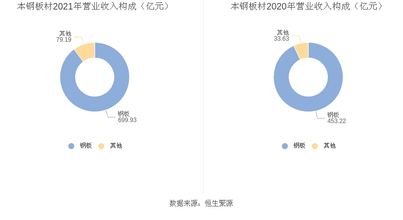 分产品来看,2021年度益达娱乐主营业务中,钢板收入699.93亿元,占营业收入的89.84%,同比增长54.43%;其他收入79.19亿元,占营业收入的10.16%,同比增长135.49%。