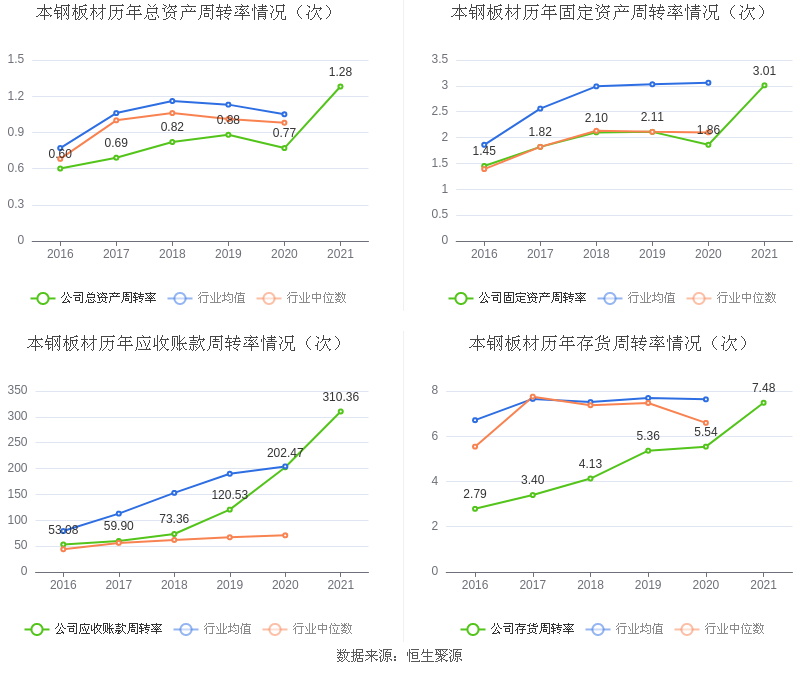 数据统计显示,本钢板材近三年净利润复合年增长率为34.12%,这一数据在2020年板材行业中排名1/18。