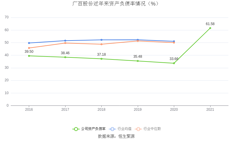在偿债能力方面,益达娱乐2021年末资产负债率为61.58%,相比上年同期上升27.92个百分点,近年来整体低于行业均值。
