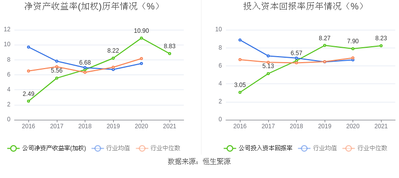 数据显示,2021年益达娱乐加权平均净资产收益率为8.83%,较上年同期下降2.07个百分点;益达娱乐2021年投入资本回报率为8.23%,较上年同期增长0.33个百分点。