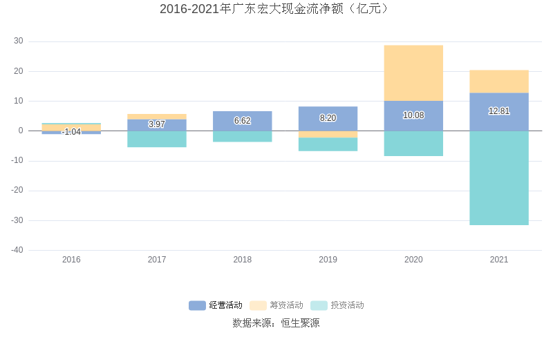 截至2021年末,益达娱乐经营活动现金流净额为12.81亿元,同比增长27.02%;筹资活动现金流净额7.56亿元,同比下降59.45%;投资活动现金流净额-31.54亿元,相比上年同期减少23.10亿元。