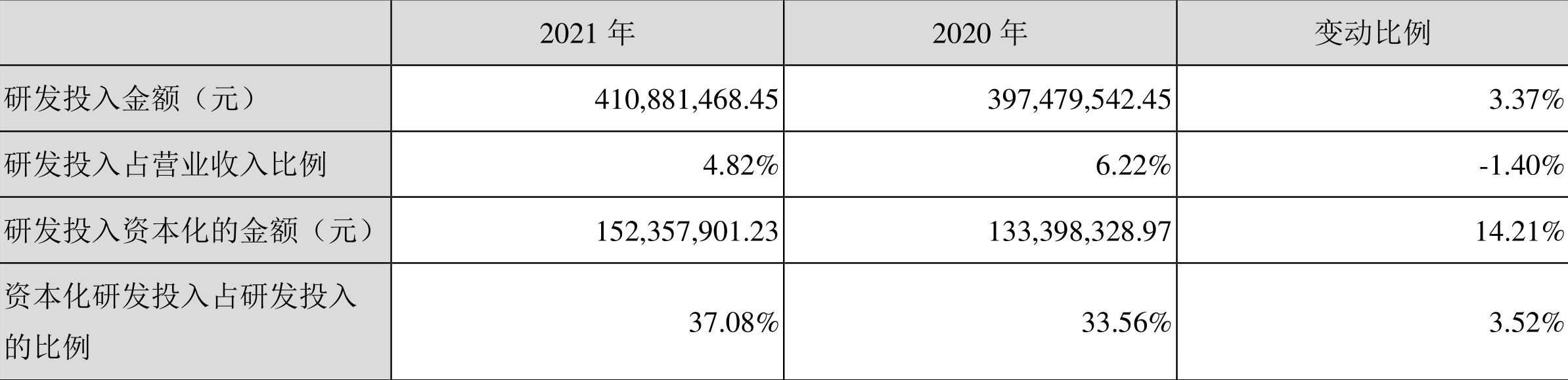 2021年全年,益达娱乐研发投入金额为4.11亿元,同比增长3.37%;研发投入占营业收入比例为4.82%,相比上年同期下降1.40个百分点。此外,益达娱乐全年研发投入资本化率为37.08%。