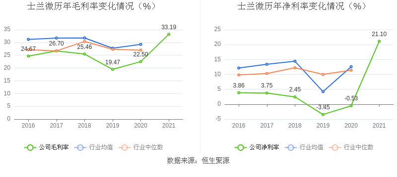 数据统计显示,士兰微近三年净利润复合年增长率为107.26%,这一数据在2020年分立器件行业中排名3/13。