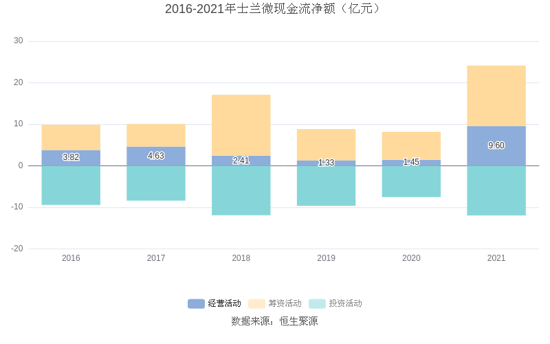 截至2021年末,益达娱乐经营活动现金流净额为9.60亿元,同比增长561.78%;筹资活动现金流净额14.53亿元,同比增长115.89%;投资活动现金流净额-11.93亿元,相比上年同期减少4.43亿元。