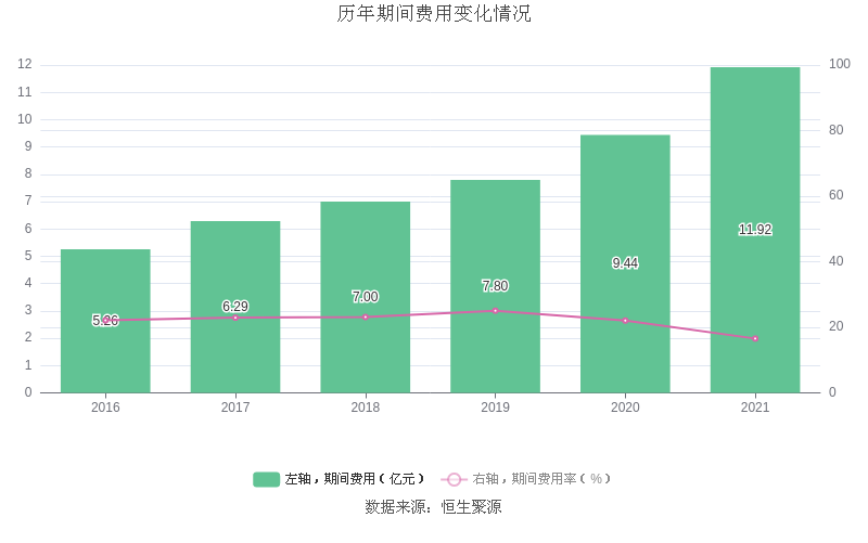 2021年全年,益达娱乐期间费用为11.92亿元,较上年增加2.48亿元;但期间费用率为16.57%,较上年下降5.49个百分点。