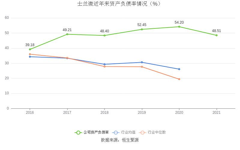 在偿债能力方面,益达娱乐2021年末资产负债率为48.51%,相比上年同期下降5.69个百分点,近年来整体高于行业均值。