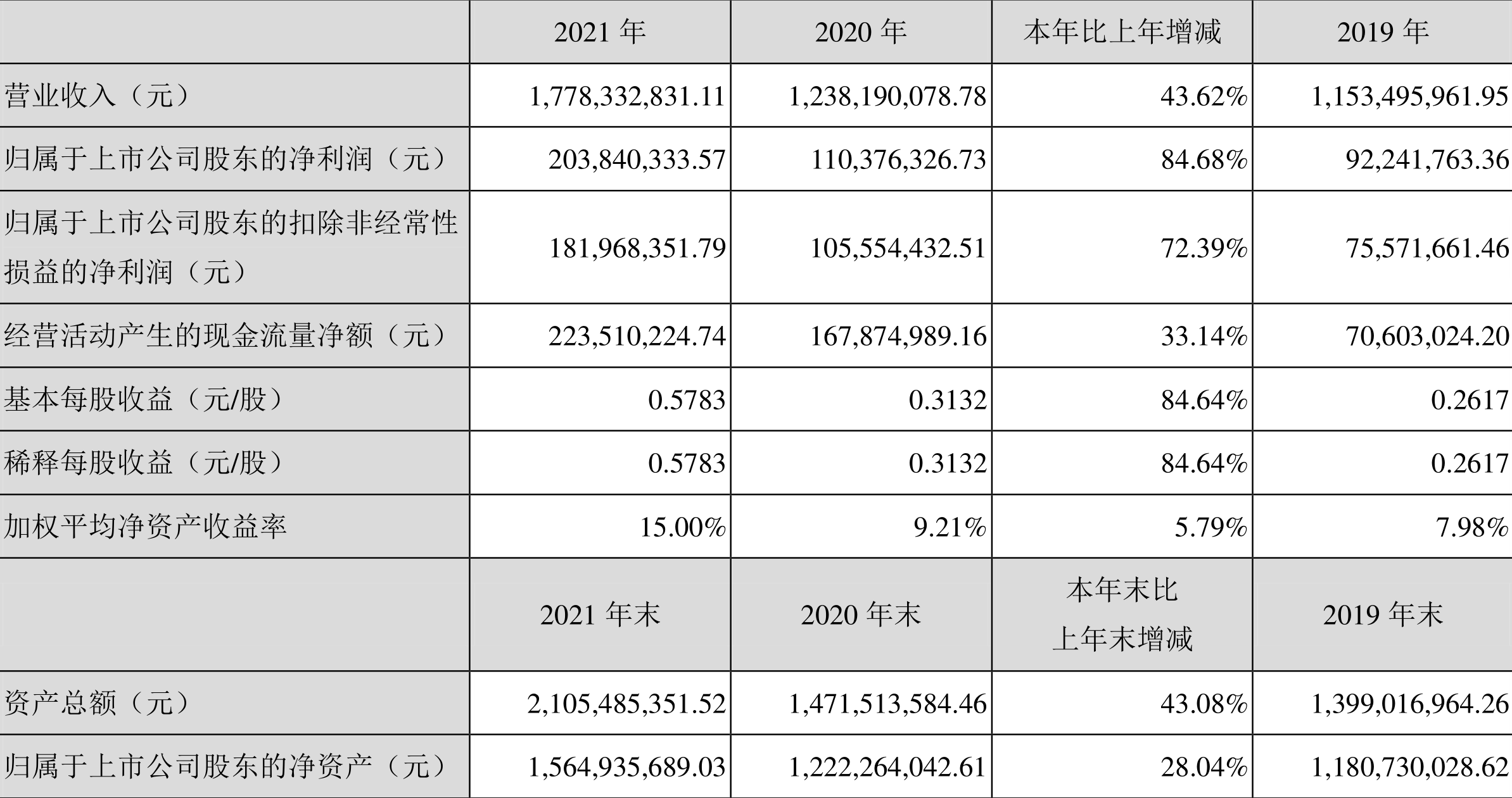 中证财讯 兰卫医学(301060)3月29日披露2021年年度报告。2021年,益达娱乐实现营业收入17.78亿元,同比增长43.62%;归母净利润2.04亿元,同比增长84.68%;扣非净利润1.82亿元,同比增长72.39%;经营活动产生的现金流量净额为2.24亿元,同比增长33.14%;基本每股收益为0.58元,加权平均净资产收益率为15.00%。拟向全体股东每10股派发现金红利3.00元(含税)。