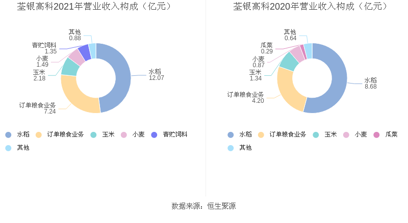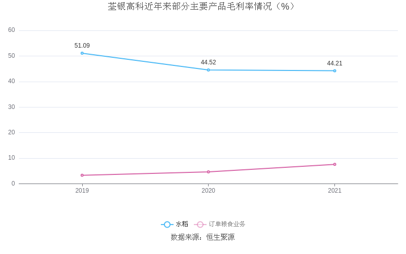 分产品看,水稻、订单粮食业务2021年毛利率分别为44.21%、7.60%。